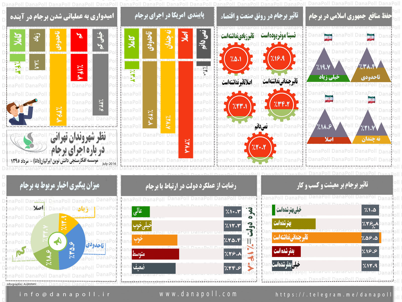 * זאת ועוד, ממצאי הסקר האחרון עולים במידה רבה בקנה אחד עם ממצאי סקר נוסף, שנערך לאחרונה עבור אוניברסיטת מרילנד האמריקנית. הסקר ההוא הצביע על כך שכ-74% מהציבור האיראני אינו חש בכל שיפור כלכלי מאז הסכם הגרעין, כי שיעור תומכיו המושבעים של הנשיא הצטמצמה מכ-60 אחוז באוגוסט 2015 לפחות מ-40 אחוז ביוני 2016 וכי התמיכה בהסכם הגרעין ירדה מ-76% מיד לאחר ההסכם ל-63% כעבור שנה.